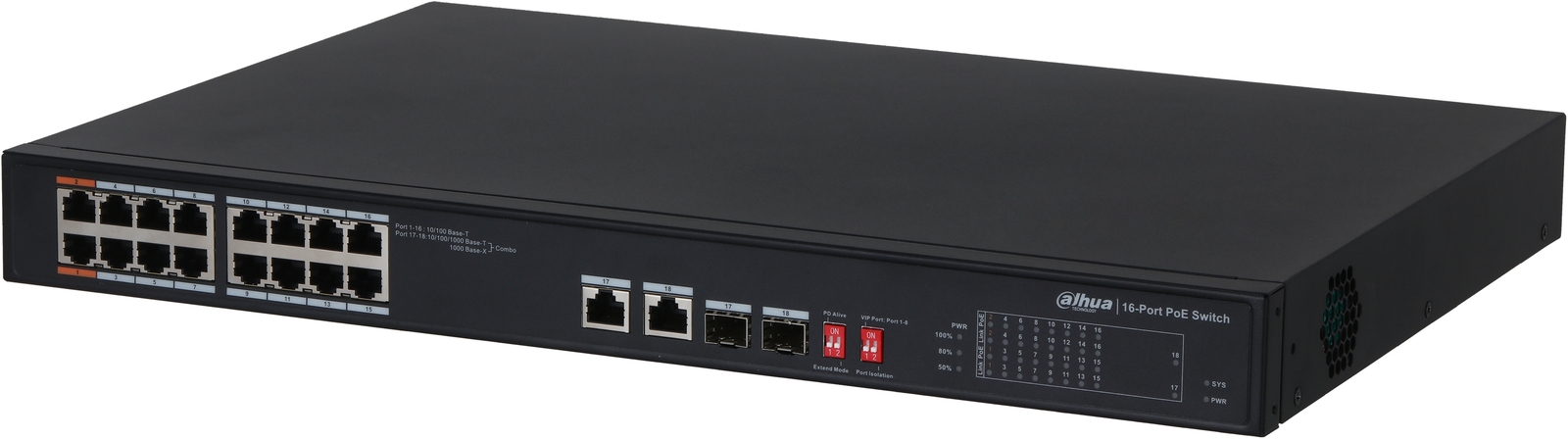 سوئیچ شبکه POE شانزده پورت داهوا مدل Dahua DH-PFS3218-16ET-135 گارانتی صنعت امن
